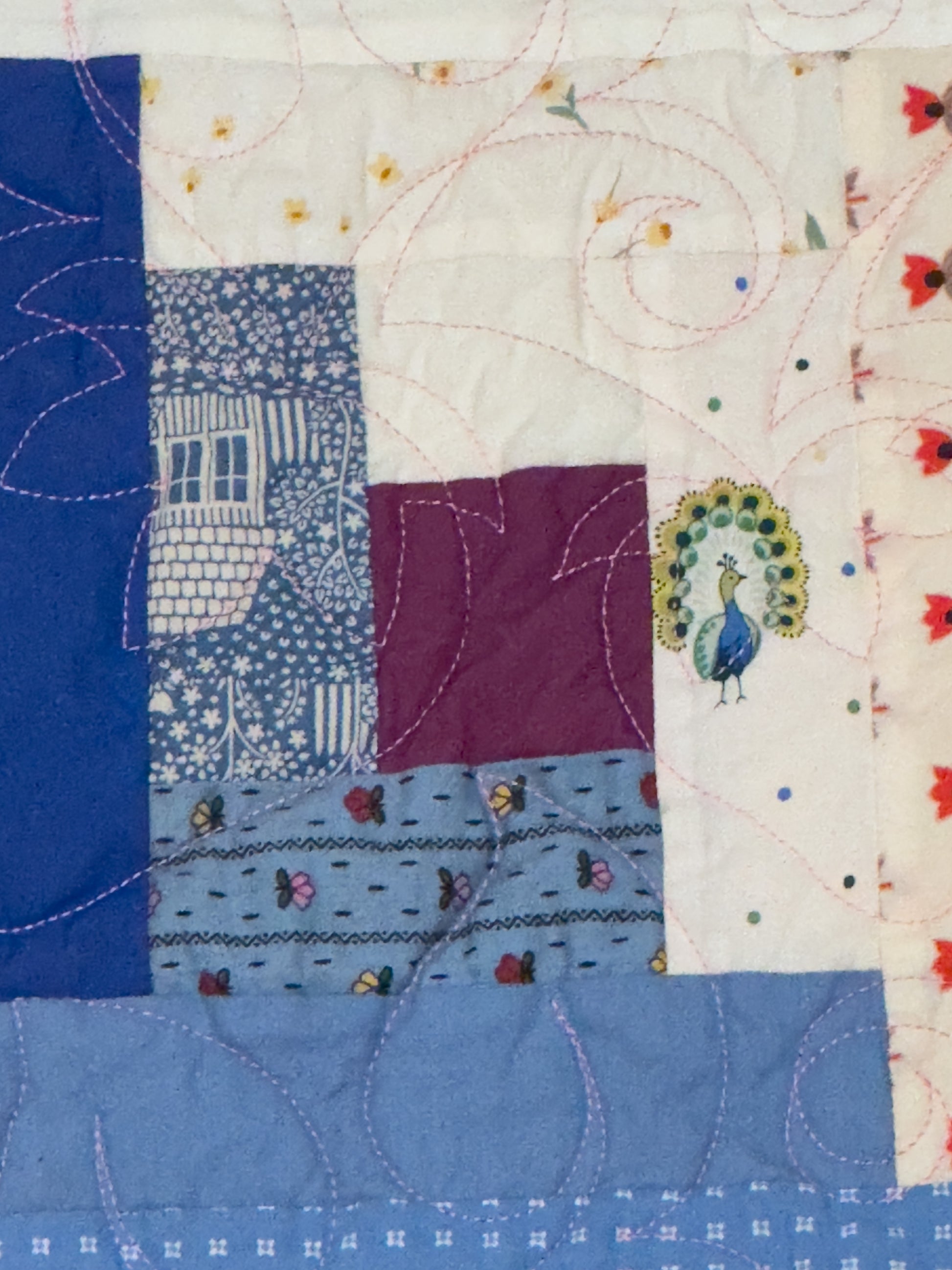 Materials: OEKO-TEX certified cotton with accent vintage cotton top and back, the very finest superwashed wool batting